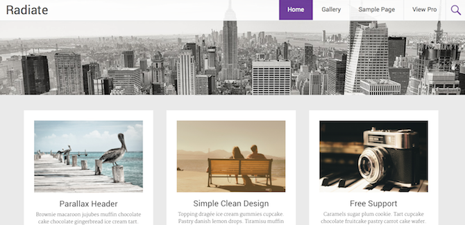 radiate-theme-vivacity-infotech   DEMO | DOWNLOAD   Rediate Theme is developed by ThemeGrill  and it is responsive and retina ready and it features a parallax header image, custom backgrounds, custom CSS, and color options. Free support is available as well. But what I like the most about this theme is how structured it is. Your navigation sits up top, the top image offers breathing room, then the content boxes present you with your options.